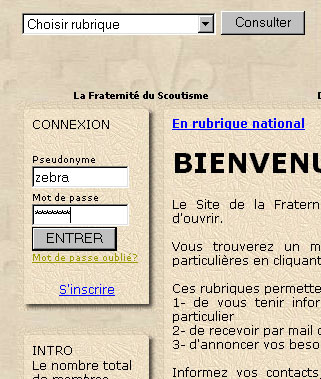Il vous faut entrer votre pseudo et votre mot de passe (que vous avez choisi lors de votre inscription (si vous n'êtes pas inscrit, vous pourrez le faire depuis cette même page), et ENTRER :